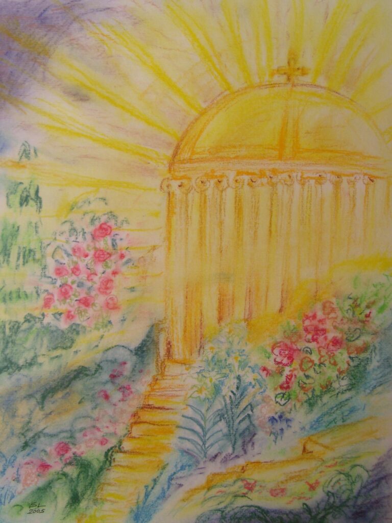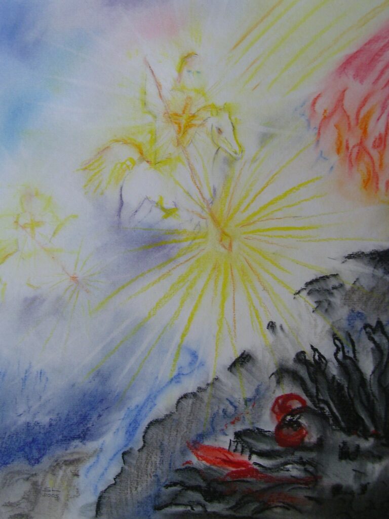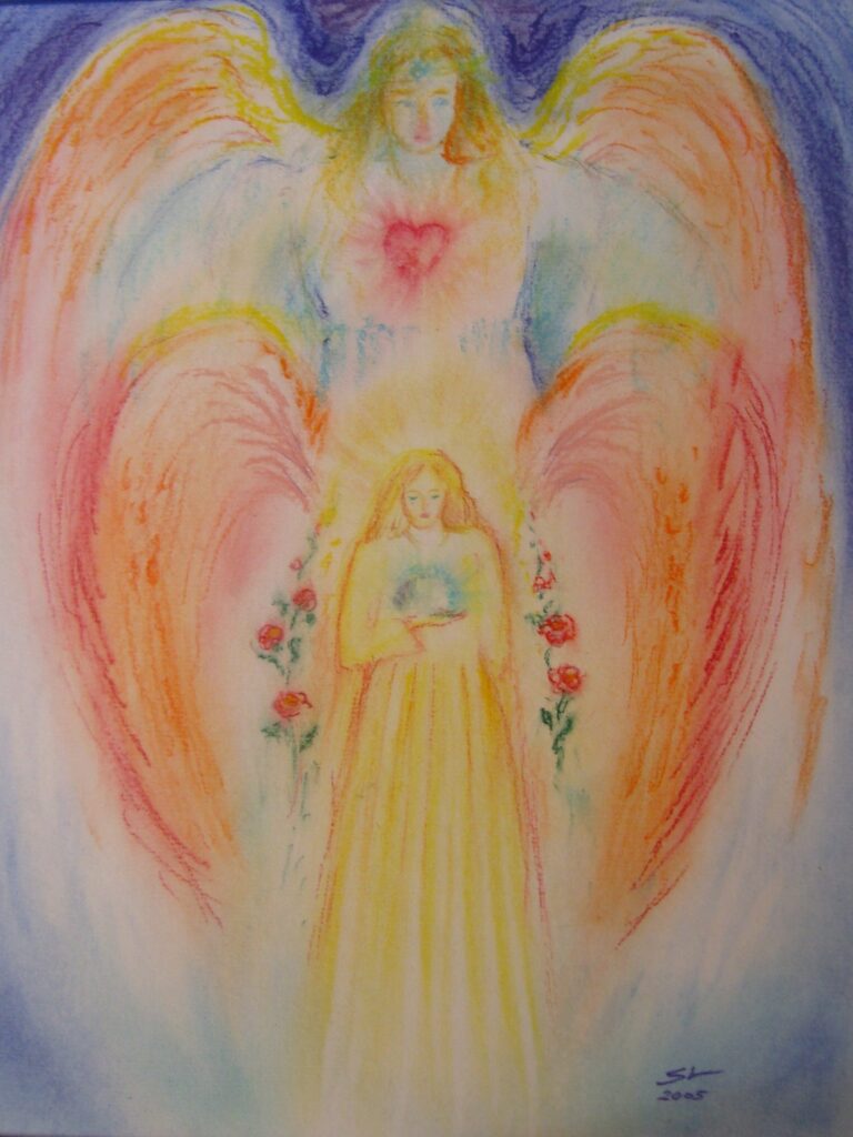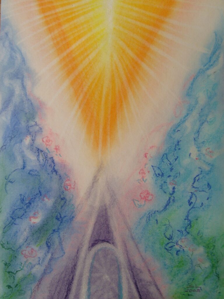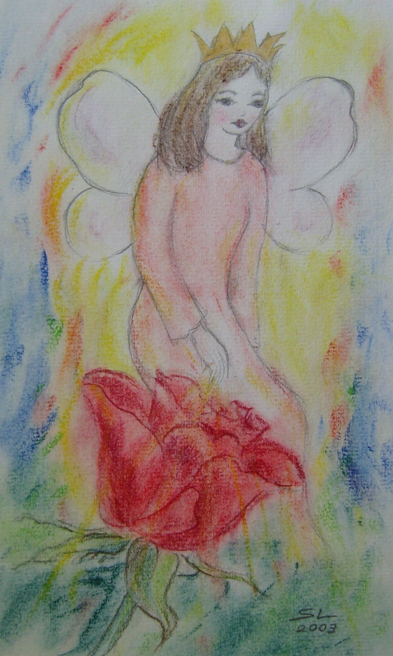 DIE TAGE DANACH Pastellkreide SCHUTZENGEL Pastellkreide TOR ZUR ANDERSWELT Pastellkreide DIE LICHTSTREITER Pastellkreide LICHTTEMPEL Pastellkreide ENGEL MIT LEBENSKRONE UND ENGEL MIT PALMZEIG Guachefarben GELBE ROSE Pastellkreide ROSENELFE Pastellkreide ROTE ROSE Pastellkreide PORTRAIT INGRID Pastellkreide JOHANN STRAUSSS Mischtechnik