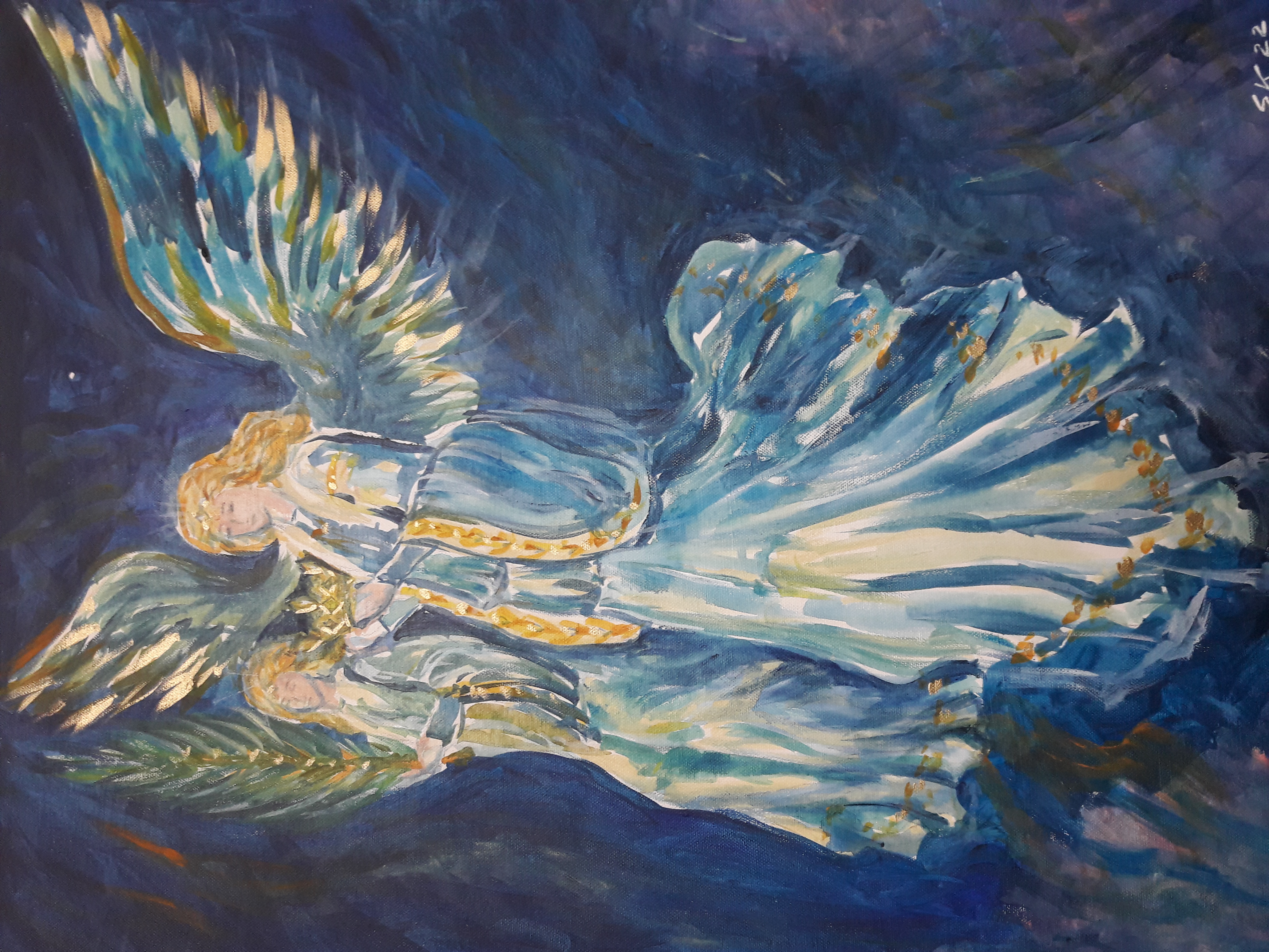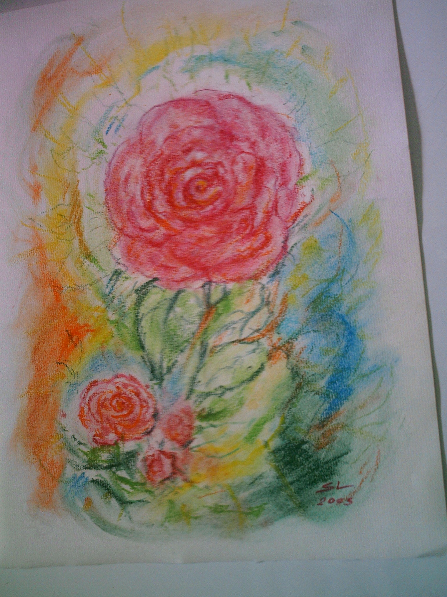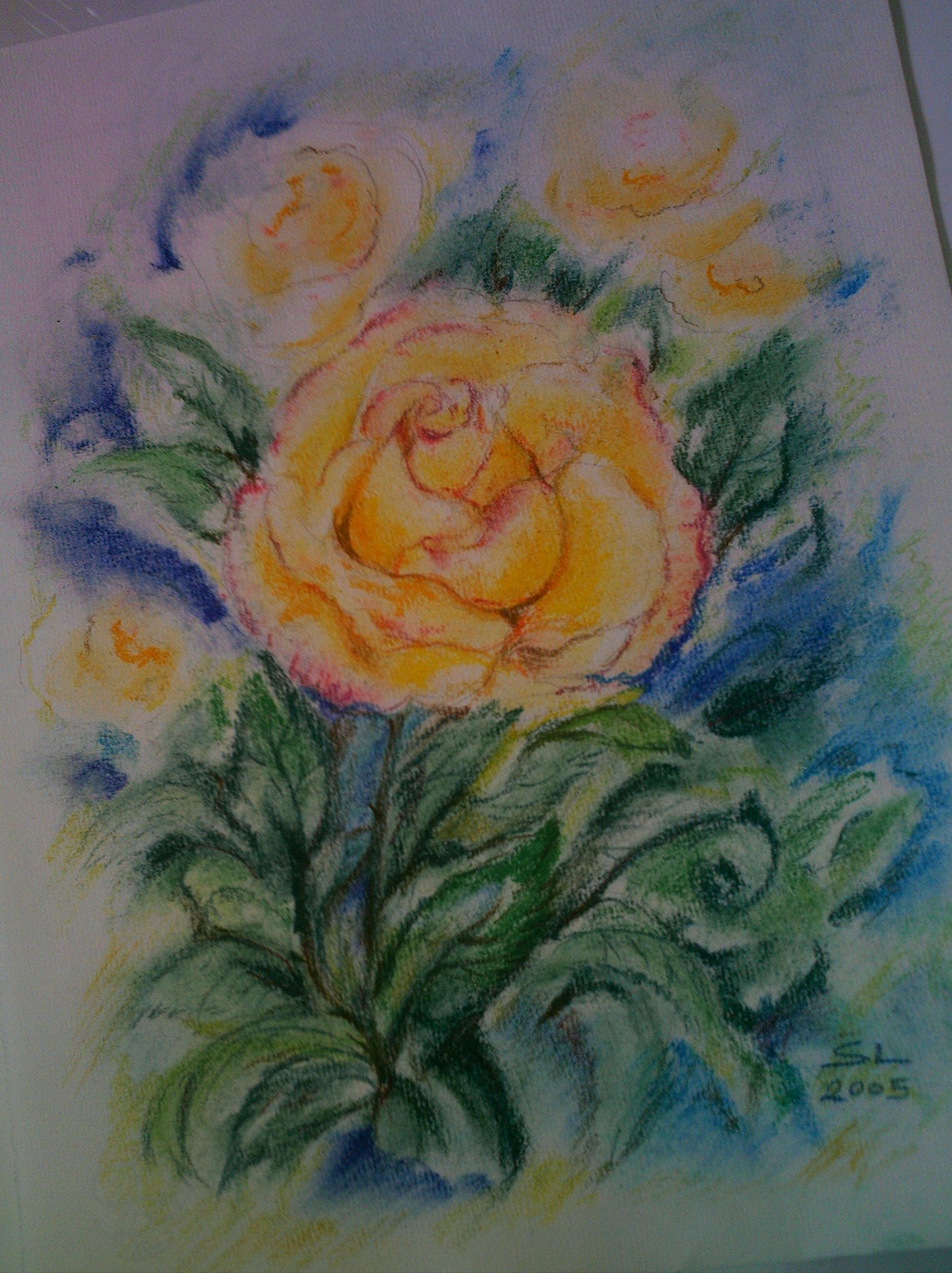 DIE TAGE DANACH Pastellkreide SCHUTZENGEL Pastellkreide TOR ZUR ANDERSWELT Pastellkreide DIE LICHTSTREITER Pastellkreide LICHTTEMPEL Pastellkreide ENGEL MIT LEBENSKRONE UND ENGEL MIT PALMZEIG Guachefarben GELBE ROSE Pastellkreide ROSENELFE Pastellkreide ROTE ROSE Pastellkreide PORTRAIT INGRID Pastellkreide JOHANN STRAUSSS Mischtechnik